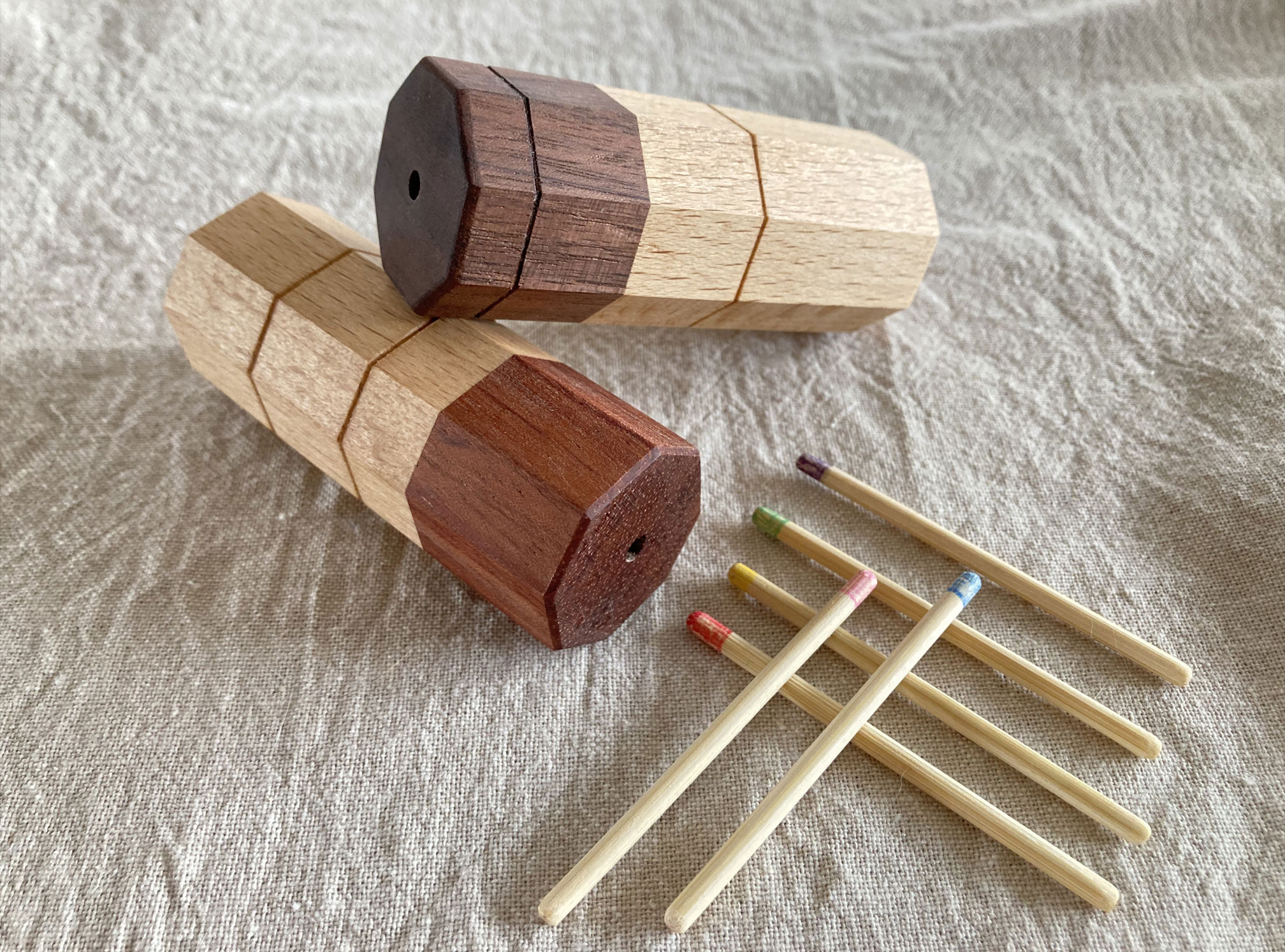 2つの好きな木を選んでおみくじを入れる箱を作り、天然オイルを塗って仕上げます。