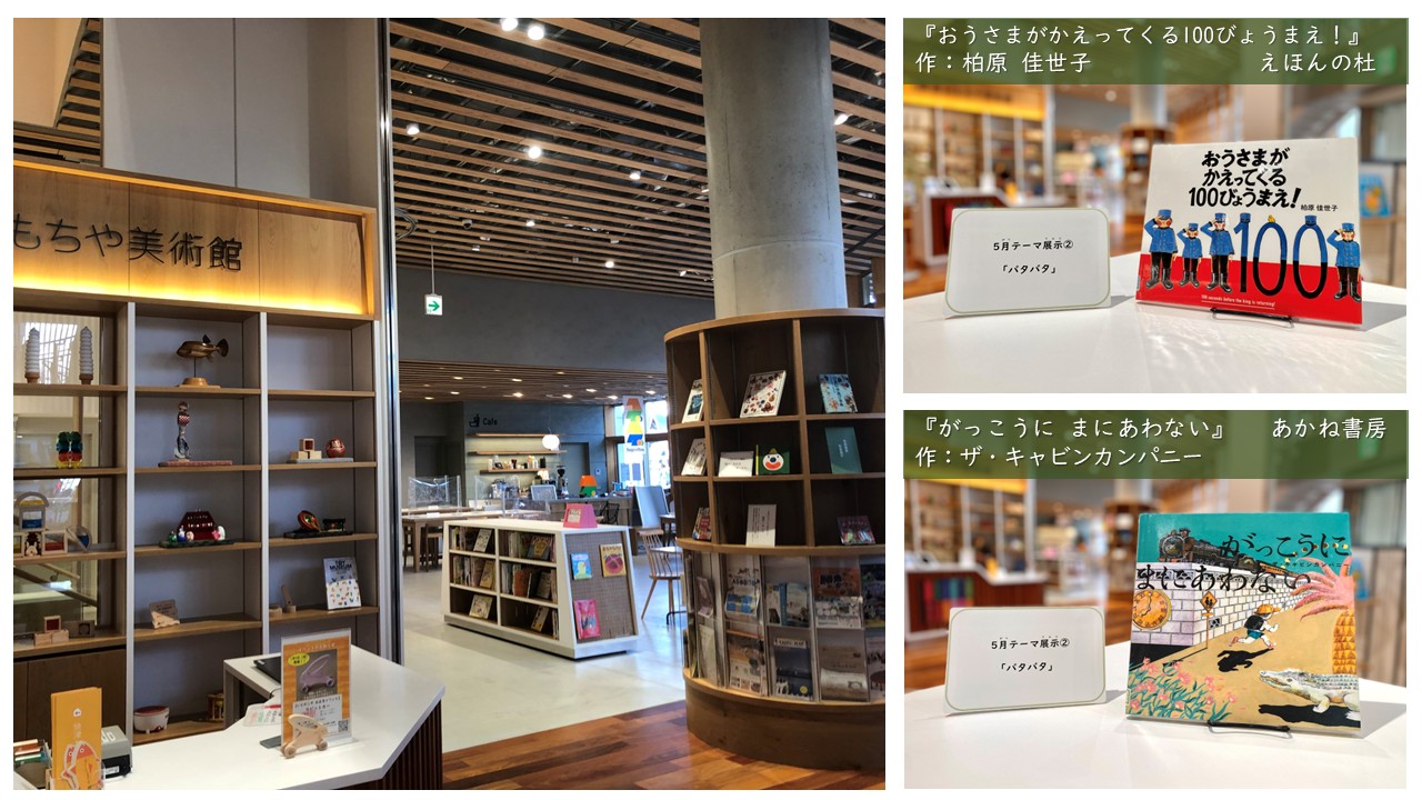 5月テーマ展示 「バタバタ」 走って、動いて、大さわぎ! にぎやかなバタバタがいっぱいの絵本を集めました。 なんだか忙しい、でもちょっとワクワク! いろんなバタバタを絵本で楽しんでみてください。 おもちゃ美…